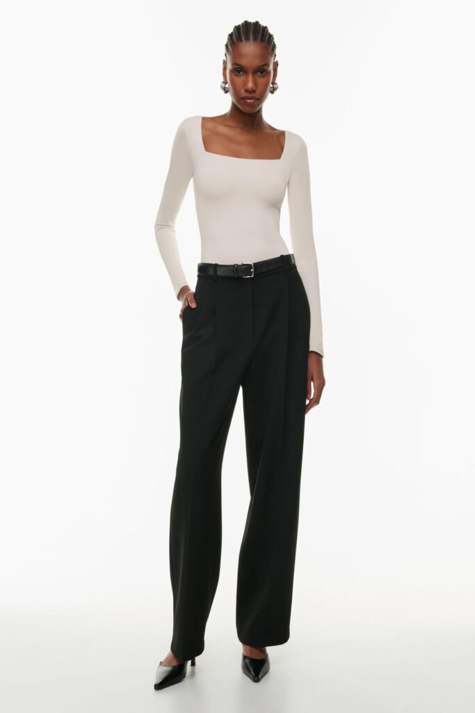 - High neckline complete with ribbed hemline